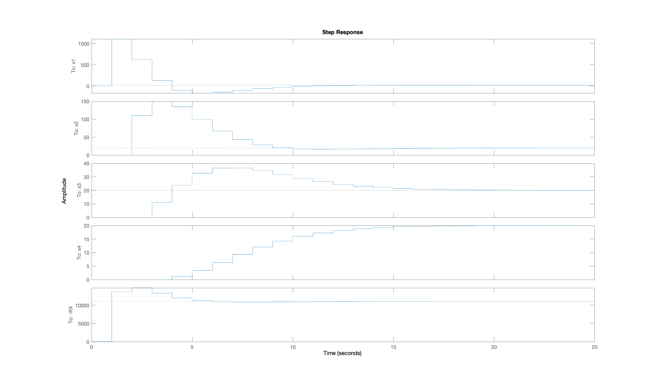 where \textbf{x} = [x_1,x_2,x_3,x_4]^T , u is the heater temperature, and the A,B,C,D matrices can be found in the
