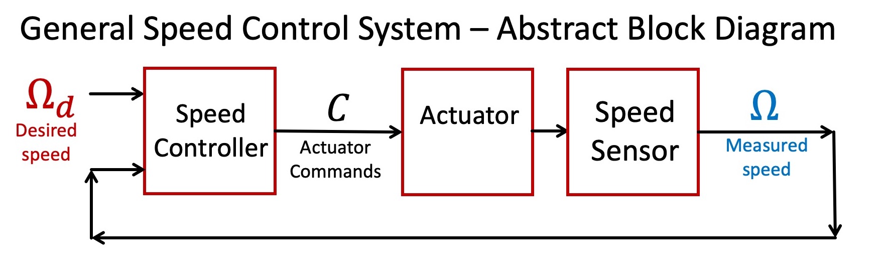 The following block diagram illustrates the structure of the speed control system that we will develop.