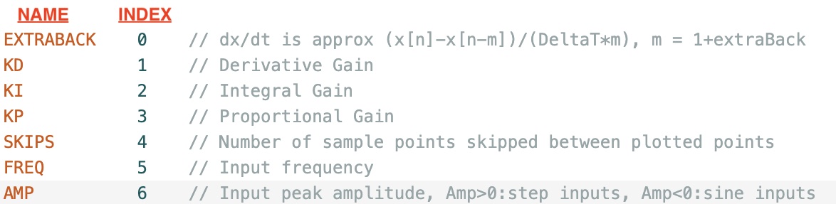 - Kp=value, Kd=value, Ki=value — fix a gain at a scalar value (default: Kp=1, Kd=0, Ki=0).