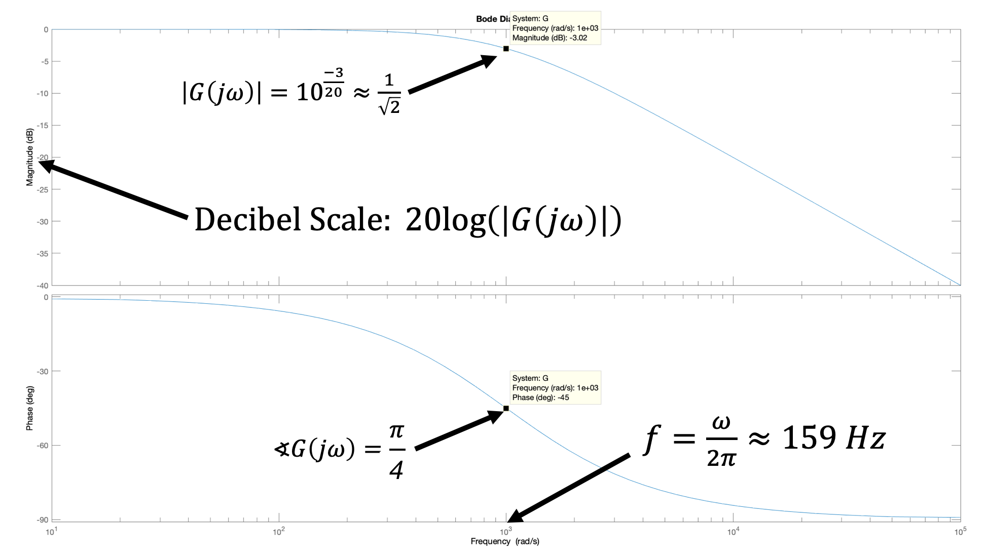 The frequency response also shows the impact of including the first-order system in a closed loop, as can be seen in the plot generated by