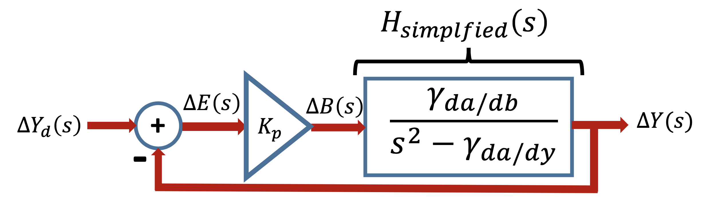 Can you determine the closed-loop transfer function from \Delta Y_d to \Delta Y for this simplified model of the proportional-gain feedback system? And based on your experiment, where are the closed-loop poles (are they real, imaginary or complex)? What can you say about the sign of