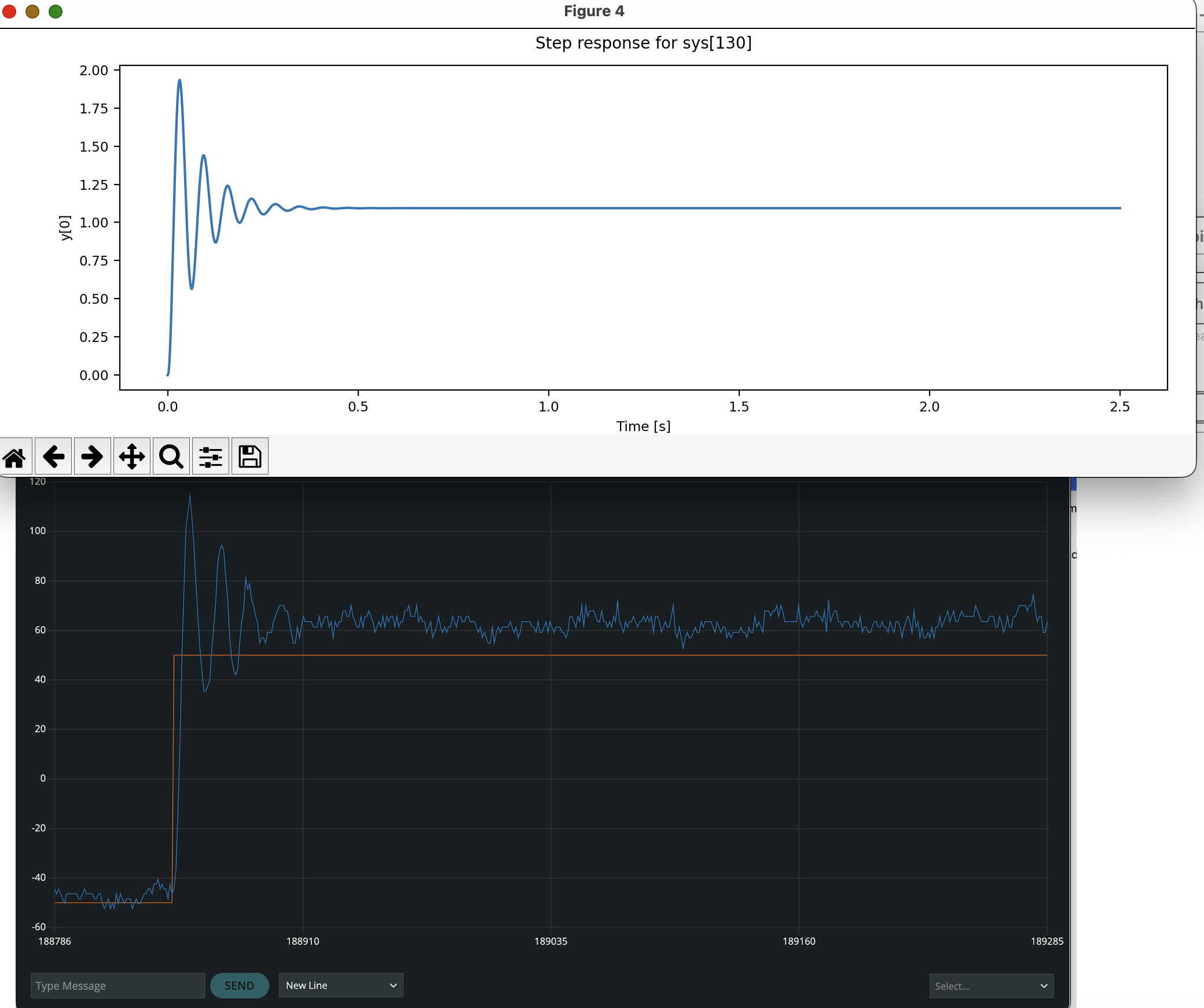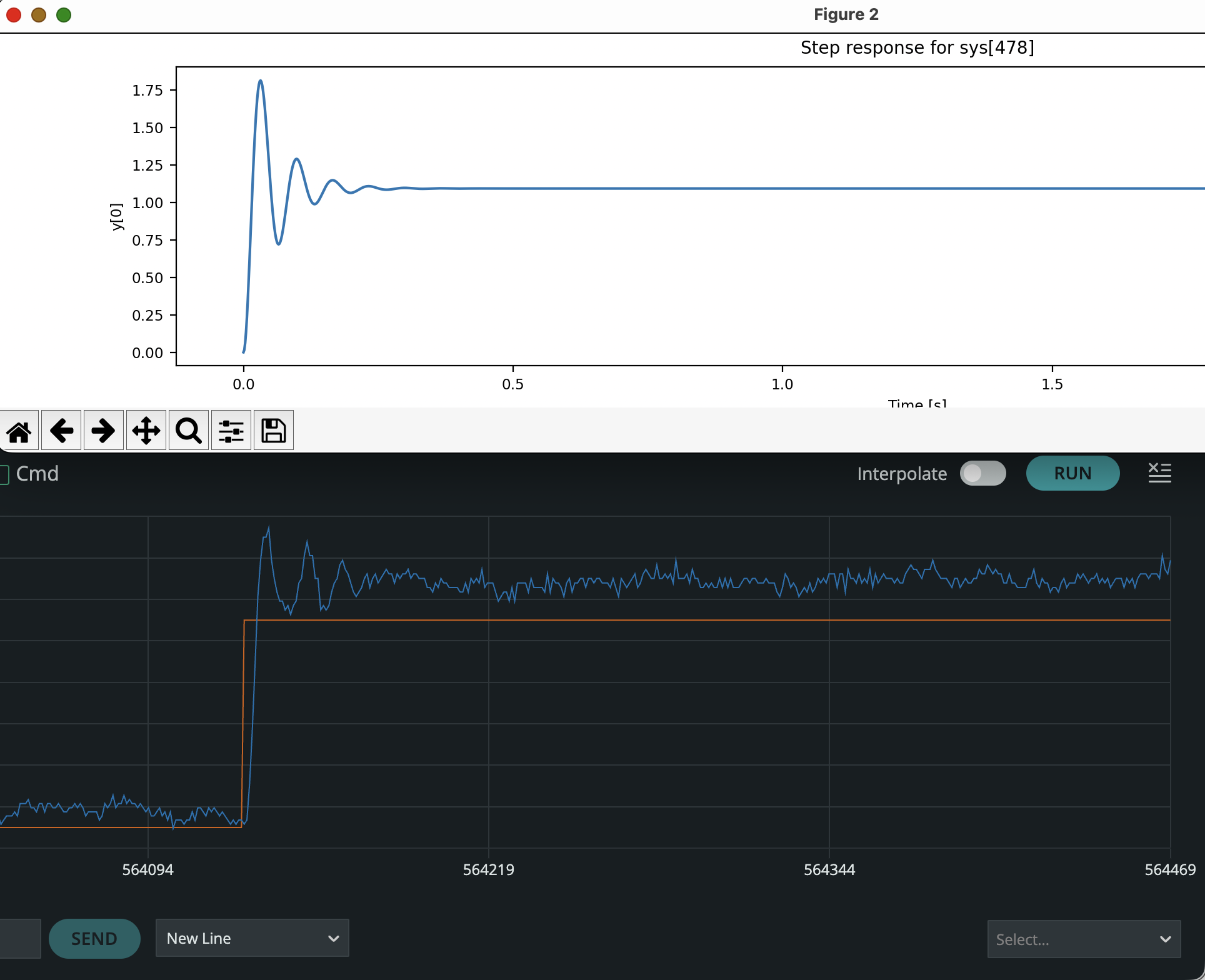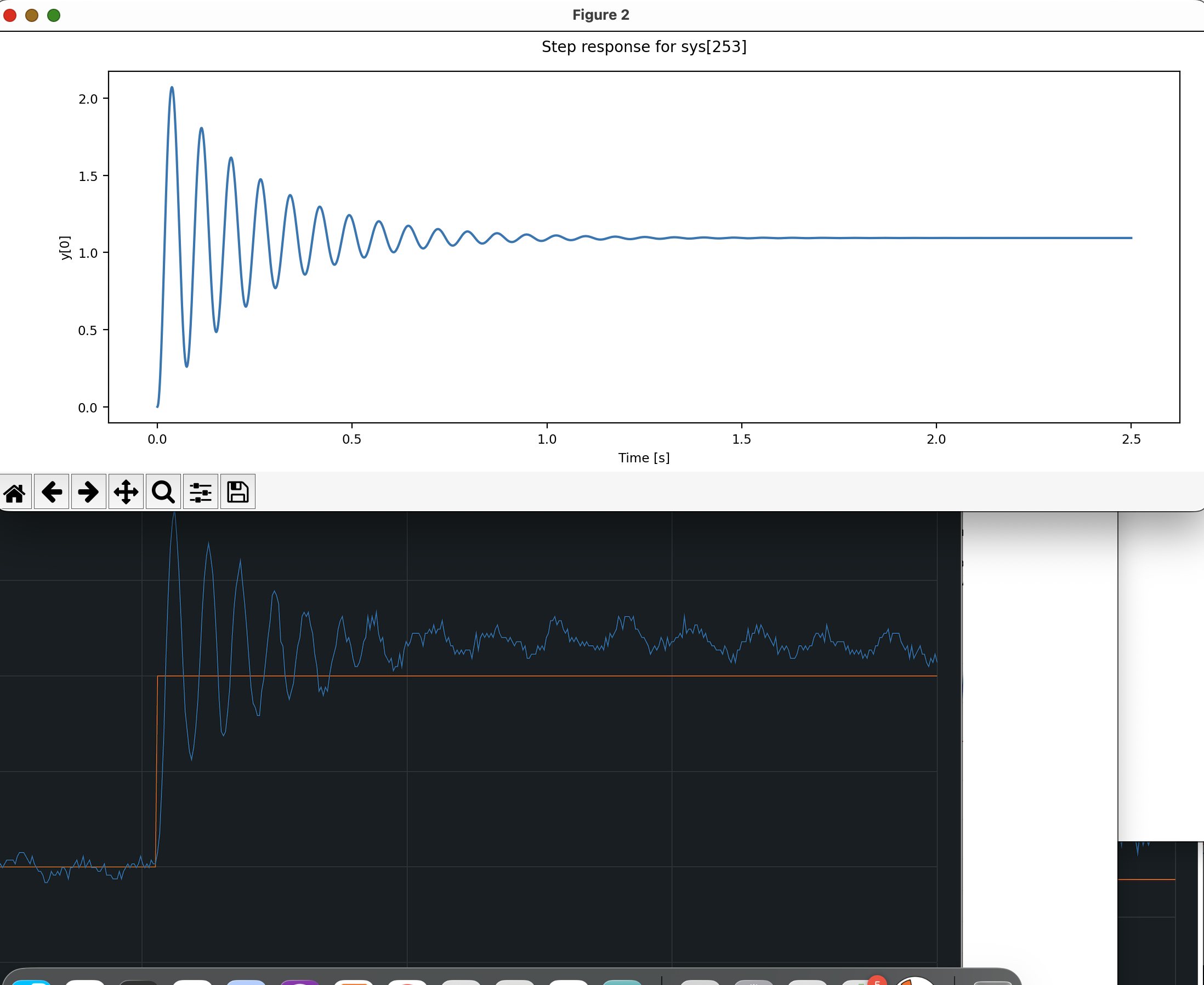 for our optimized K_{d0} and K_p. Note that the Teensy plots are 2.5 seconds long, as a result of typing 4 -50 in the send window, which sets the plotting dT to 0.005 seconds.