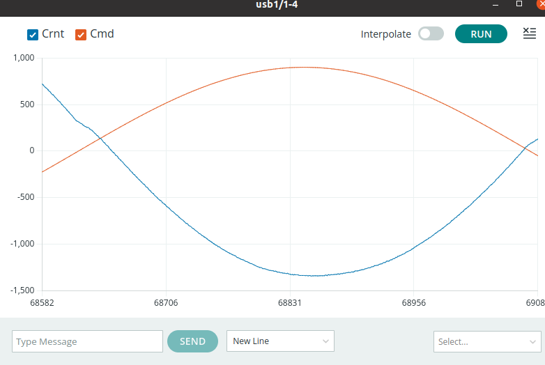 If you set the MODE on line 10 of the Teensy sketch to 0 (which is only for testing the coil, NOT FOR MAGLEV), upload the sketch, and set the frequency (by typing 5 10 to set the frequency to 10 hertz, for example), you should see the sinusoidal command, c(t), and the coil current response, i_{coil}(t). You can then change the frequency (though you may have to change the number of skipped points in the plotting to see the sinusoids clearly, try typing 4 19 in the send window). You can also plot step responses, by changing the amplitude of the input (try typing 6 1.8 in the send window), that will change the preset value of the amplitude from -0.9 to 0.9, and it will switch to square waves). Be sure to use a low enough square wave frequency so that the coil current achieves quasi-steady-state.