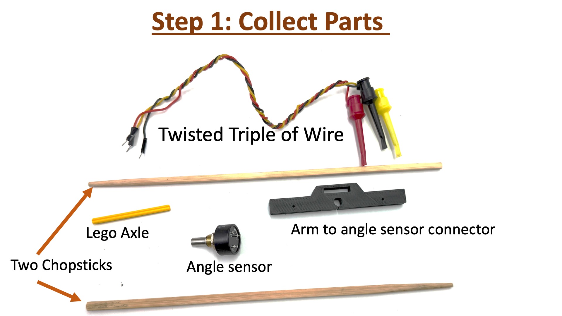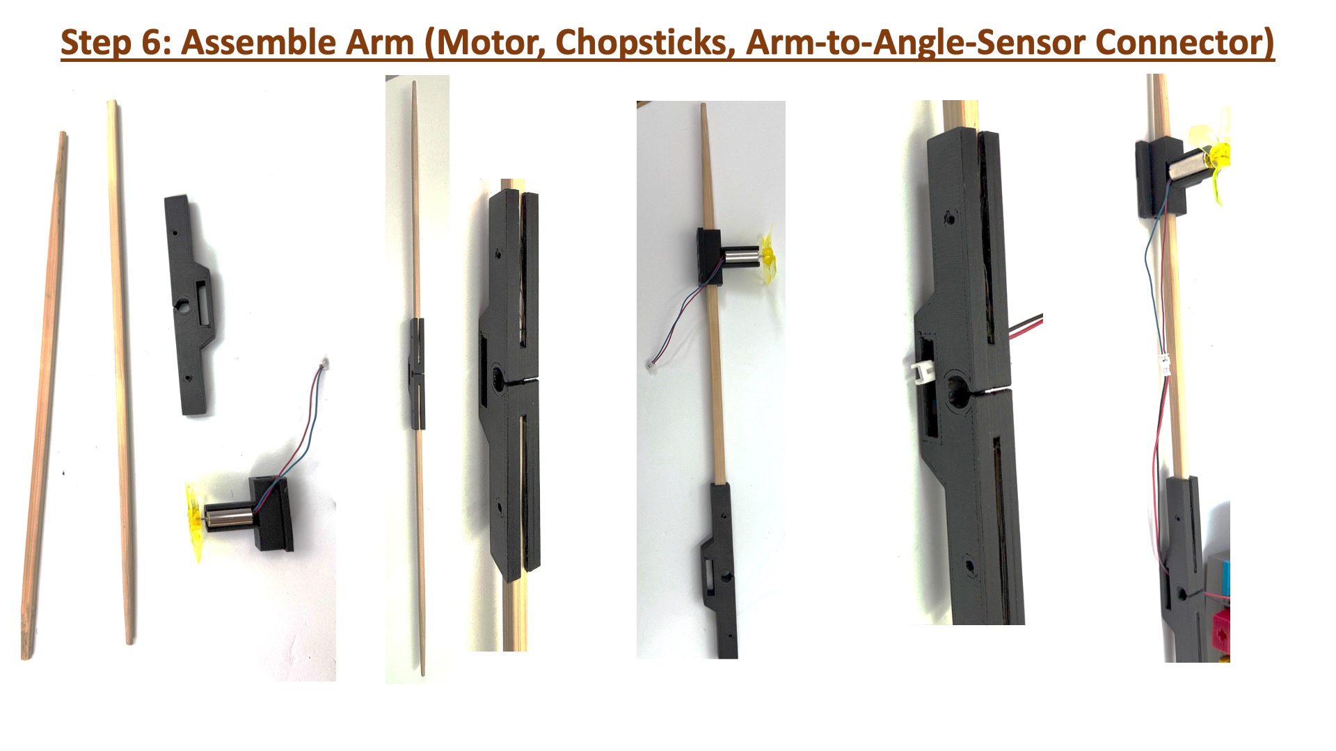 Please follow the instructions below to assemble the arm. You will be using the propeller arm for the several labs, so please assemble with care.